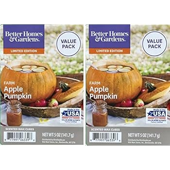 Better homes & gardens banana pumpkin bread scented wax melts:highly fragrancedwax can be recycled or reusedeasy clean upcontains 6 wax cubesfor home or officepersonalize your spacescented cubes release a soothing and fragrant scent into the air immediately upon meltingreplace wax melts when fragrance is goneno flame or soot residueuse with electric wax warmerwax warmer sold separatelyfill your room with a pleasant aroma with better homes & gardens banana pumpkin bread scented wax melts.